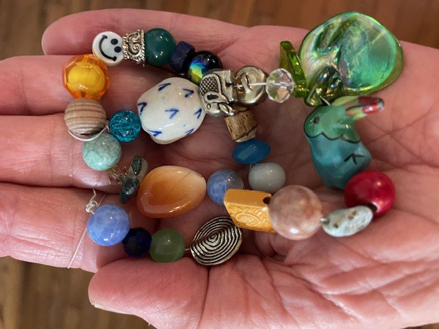 Lynn, one of the facilitators, holds up a blue bead and describes it. She names her intention for this summer—life energy—and asks us to visualize her walking confidently on the beach at low tide without a limp or cane, full of life energy. Knowing as we do that she is recovering from knee replacement surgery, the intention is not surprising. I find it empowering to energetically support her healing as I visualize her confidently walking on the beach.
