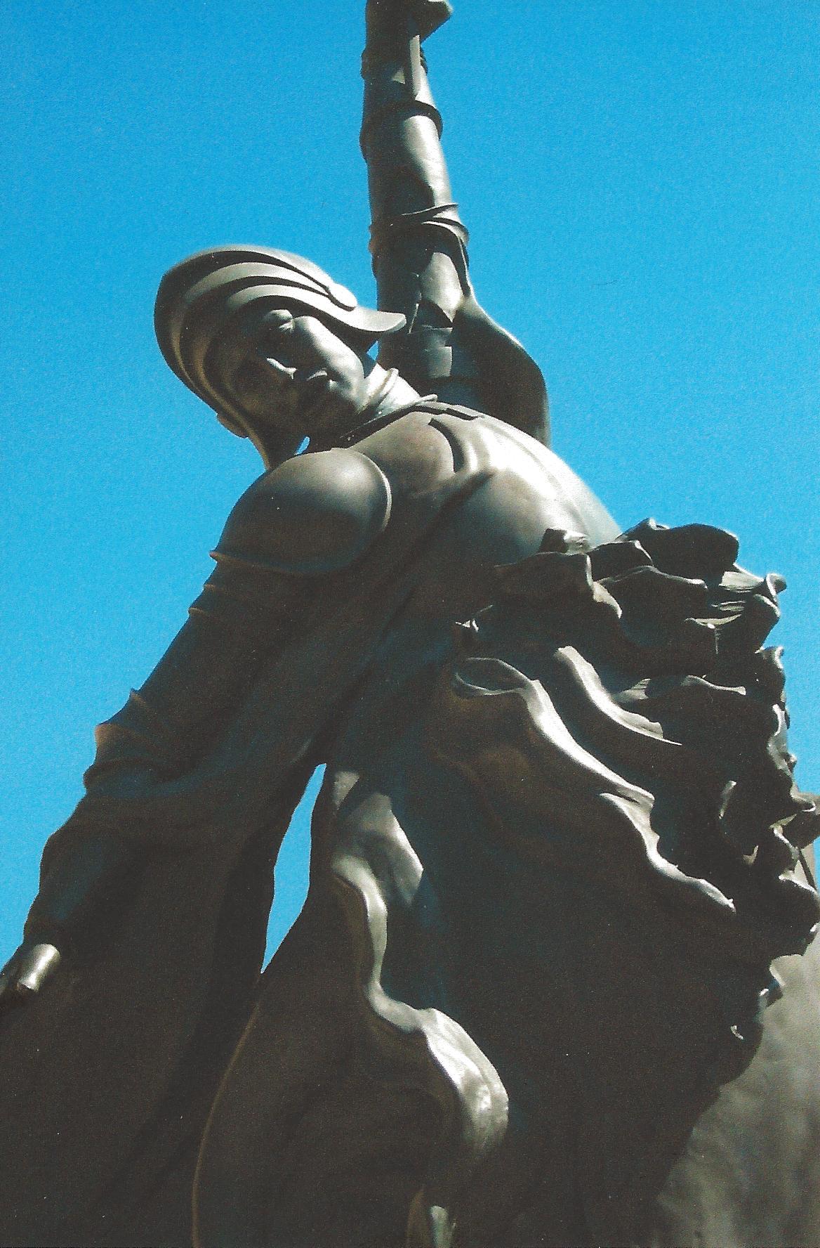 Still I longed for a deeper, authentic connection to the maternal face of God. During the winter of 1996, as I lit the candles on my altar each day, I silently asked that a female spiritual counselor might be revealed to me. My first trip to Europe was set for May of that year, and I embarked on a journey through France. In the region of Normandy, our first destination was Rouen, where Gothic architecture is renowned. The guide book also noted that Joan of Arc had died at the stake in that city, but until I stood at the site in Rouen’s market square where the fire, fueled by the French Inquisitional court, had ended her life at age nineteen, her story had not captured my interest. She was after all, a teenaged warrior and Catholic saint. I was seeking an incarnation of the Divine Mother.