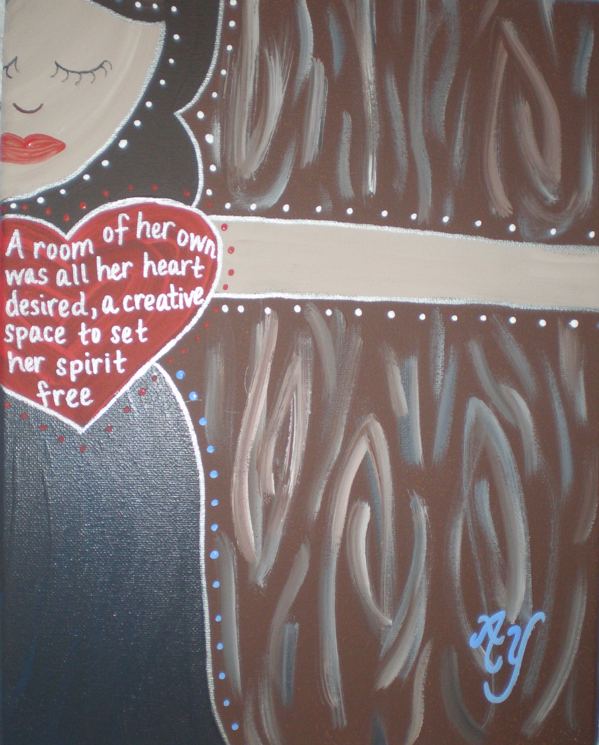 As I painted, of course, I listened to the Indigo Girls.  Together we sang, “If you need to know that you weathered the storm of cruel mortality, a hundred years later I’m sittin’ here living proof.”  As feminist writers, painters, singers, artists, activists, and scholars unite in spaces of freedom—rooms of our own—we are living proof that what Virginia Woolf did mattered.  In these ways, she gave us all a space to call our own.