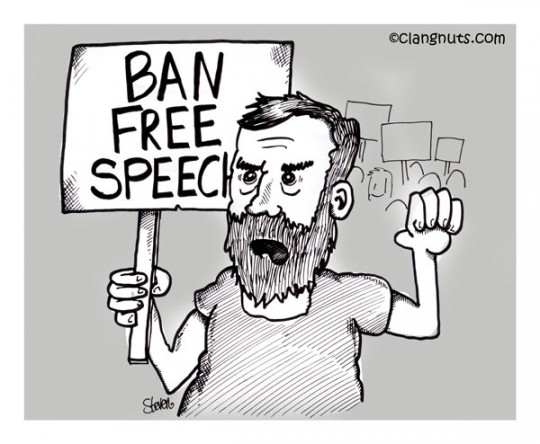 So let’s not just act as if free speech is only for politically correct speech, or that it should not be given to bigots or people who offend us. Free speech means the freedom to offend. Let’s remember how necessary free speech is for feminism and social change, and not allow ourselves to be duped into linguistic revisionism, the Heckler’s veto, blasphemy laws, gag-orders, and censorship.