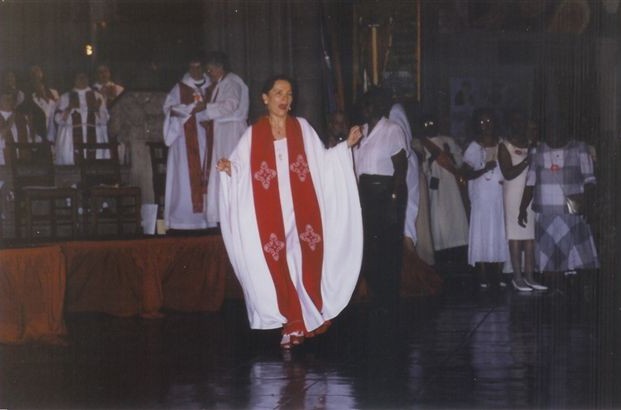 Near the end of the Philadelphia Ordinations’ silver anniversary service after Holy Communion, the choir of the Philadelphia Church of the Advocate sang uplifting songs and I broke into a spontaneous dance of thanksgiving in honor of Miriam, the dancing prophet, remembering her song of Thanksgiving.