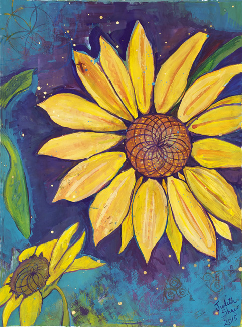 Judith Shaw, a graduate of the San Francisco Art Institute, has been interested in myth, culture and mystical studies all her life. Not long after graduating from SFAI, while living in Greece, Judith began exploring the Goddess in her artwork. She continues to be inspired by the Divine Feminine in all of Her manifestations. Originally from New Orleans, Judith now makes her home in New Mexico where she paints and teaches part-time. She is currently hard at work on a deck of Goddess cards. Her work, which expresses her belief in the interconnectedness of all life, can be seen on her website.
