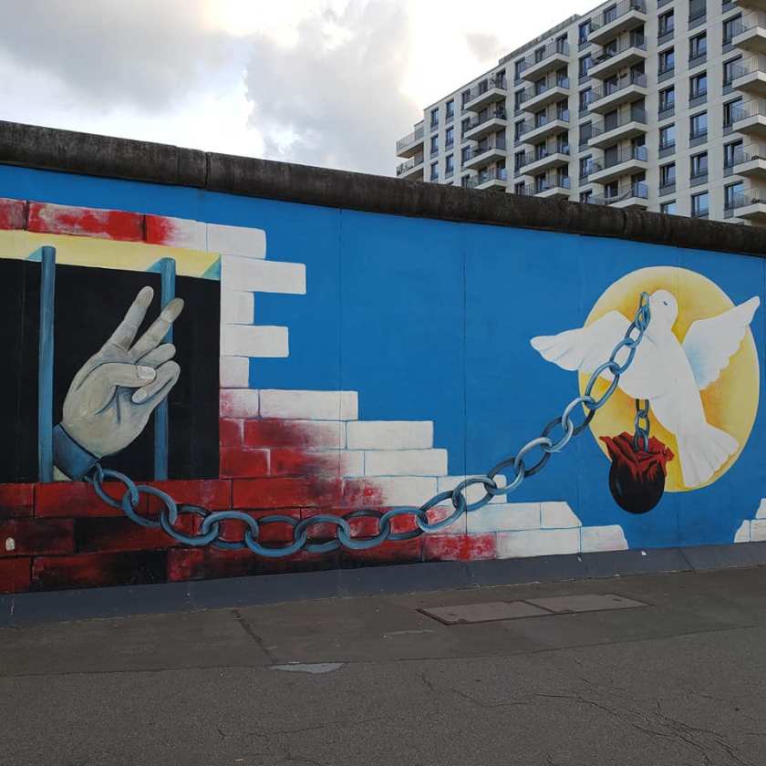 For me, perhaps the most visible symbol is the wall. The Berlin wall was in place from 1961-1989. When it fell, the East Side which had been closed off for decades, burst into freedom, as evidenced by the images on the east side of the wall, at the East Side Gallery – an open air mural gallery painted directly on that side of the wall.