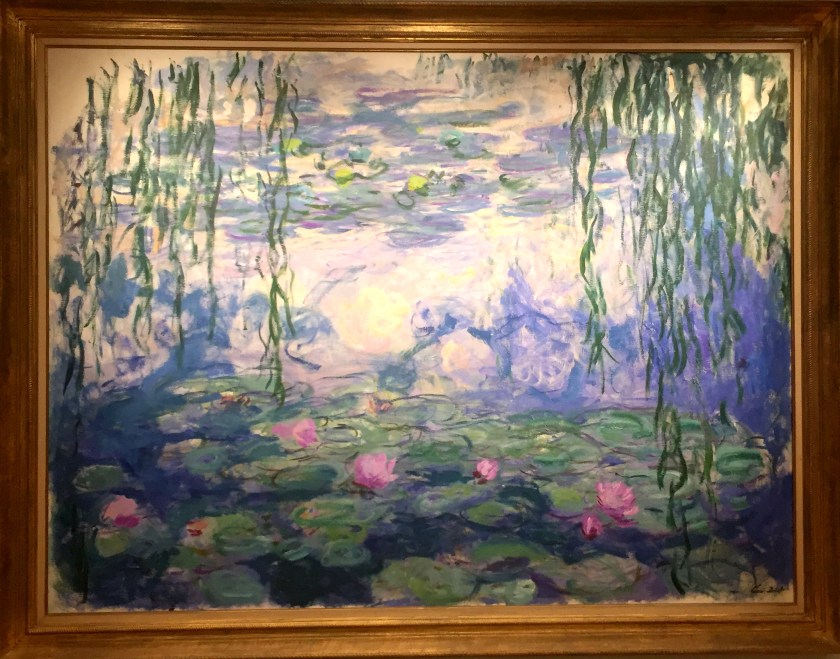 The main reason for the visit was my love of Monet. I love all of his work but in particular his waterlilies hold me enchanted. I was transfixed in the room which held a number of his large waterlily paintings. When speaking about these large paintings Monet said the purpose was to supply “the illusion of an endless whole, of water without horizon or bank.” It is that “illusion of an endless whole” that brings me into contemplation with the interconnectedness of all – the endless whole of existence. Viewing Monet’s water lily paintings has been and continues to be a spiritual experience for me. By the number of other people held entranced by the paintings, many must share my experience.