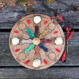 their hands over and under mine and we offer our gratitude into each morsel in turn, one for each direction and each element. For North, we speak of stability and strength, the health of our bodies, the safety and security of our foundation, the earth on which we live. For East, we speak of air, our mental states, how we will be mindful of how we speak and think and focus our energy and time. For the South, we speak of fire, of tending the flames of our inspiration, nourishing our passions, and watching for burnout. In the West, we speak of water, of being emotionally stable and loving. In the last seventeen years of parenting, if there is one thing I have learned is that rituals with children need to always involve action. The kids are eager to toss the biscuits into the air, in the directions we are honoring. In past years we have tossed pinches of cornmeal, at other times of the year grains of corn or flower seeds or dried herbs or petals, at the Winter Solstice we toss pieces of our annual golden “sun bread.” This bread, washed with egg and laden with butter is one we make together on solstice morning, shaping the smooth dough into a large sun face with a spiraled corona of rays. After it has baked, we offer scraps to the sun at noon, tossing them high into the air as we shout “Thank you! Thank you!” again and again into the crisp winter air. Last year, my garnet bracelet, a symbol of the path I walk with the goddess Persephone, flies off as I toss my sun bread and disappears into the waving stalks of wild grasses. We are never able to find it and the unexpected symbolism of Persephone becoming joined anew with the amber waves of Demeter’s grains delights me.