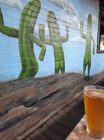 Finding restaurants along the road can be challenging, but fun.  I like the element of surprise.  This place is Calamity J Grill and Bar in Huntington, West Virginia, my first overnight stop.  Throughout my trip, I looked specifically for eating establishments that advertised outdoor seating.  Had an interesting mural to look at here while taking in some refreshment and sustenance.