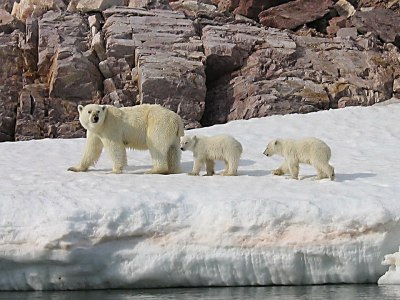 Polar bears depend on sea ice for their survival. If none is available they will spend time on land. Most polar bear females birth their cubs on land, in dens near the shoreline. Loss of sea ice due to Global Warning presents the greatest threat to the survival of polar bears, who were listed as a threatened species in 2008.