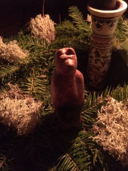 It is Christmas Eve and I open the door to two masked loved ones that enter my fragrant candlelit living room. We share laughter, words, and stories and my dearest young friend offers me a gift. When I open the box a hand carved Standing Bear looks up at me. “Oh, he’s a male Brown Bear” the child cries out in excitement. Bears are some of her very best friends. The adult is astonished at the depth and skill of the carving; it’s as if the bear has come to life. I light the candle in the center of the wreath as I welcome my new friend into our home…
