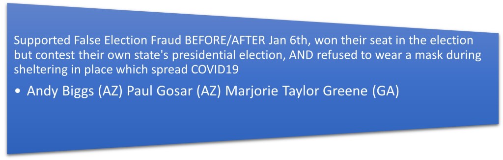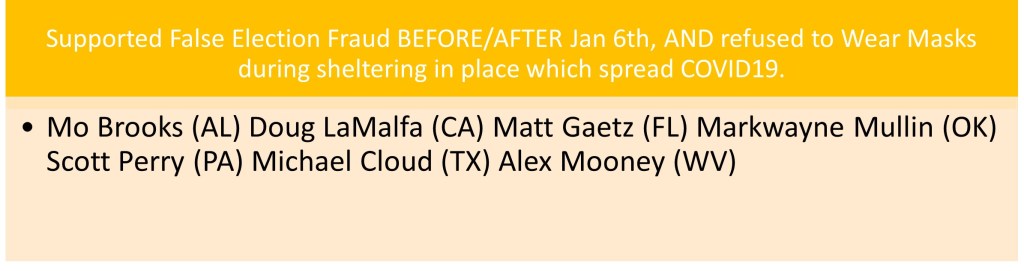 All these members should be removed from office, in the coming weeks or for ALL those representative’s removal in their next election in 2022. We also need to make sure that Mitch McConnell, Lindsey Graham, and others who have long been Trump’s right arm also have to pay for the actions, legislature, falsehoods, and crimes they have committed during this presidency.