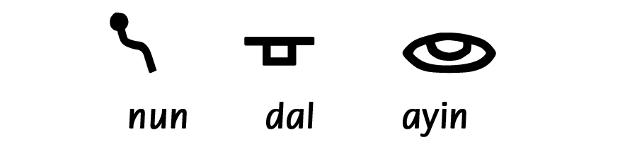 Eden is ayin, dal, nun. Ayin is an eye. Dal is a door. Nun is a seed. Here are the pictographs: