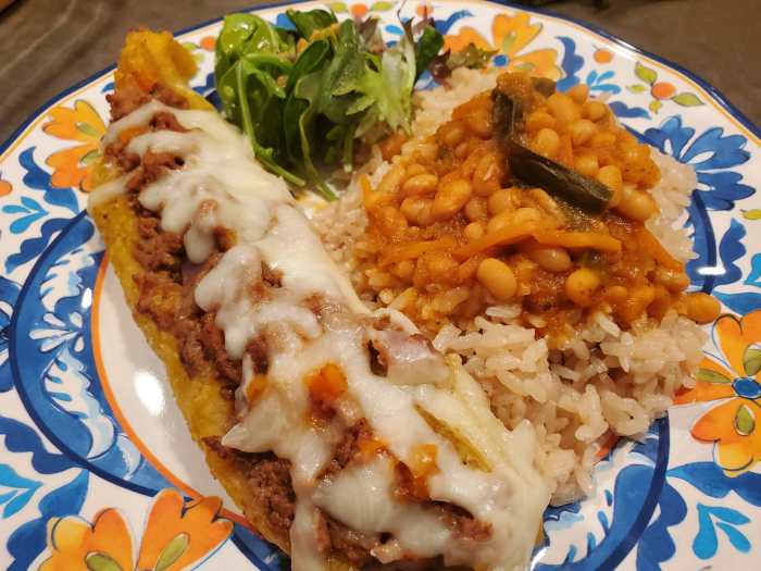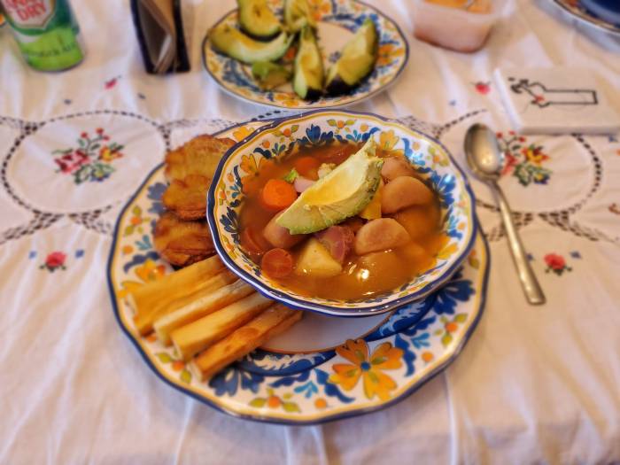 Even if you arrived with no intention of eating, there was no way you were leaving with an empty stomach. Who am I kidding, even if you had a full stomach you’d be forced to have aunque sea un poquito (at least one bite). Anxious because she said she had nothing to serve, she started pulling out leftovers from the fridge. There were two types of rice, 3 different kinds of meat, arañitas, tostones, stewed beans and budín for dessert. When everyone finished eating there was leftover food from the leftovers.
