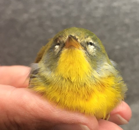 I have never seen a warbler before as they inhabit the tops of trees and never come to our feeders. It is amazingly beautiful. We create a nest for it—a small container lined with soft things—and place the bird upright inside the nest—on the deck but out of the wind. Mark looks up what warblers eat and adds a few mealworms to the nest. I try not to worry, but in my heart I’m fairly sure it won’t survive.