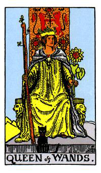 The symbolism of the Major cards is extremely rich and varied. Rachel Pollack, a contemporary Tarot scholar, offers an in-depth analysis of each card in the deck in her book Seventy-Eight Degrees of Wisdom. Pollack’s discussion of card #10–The Wheel of Fortune, points out that it presents symbols of medieval folklore and alchemy as well as Christian, Jewish, and ancient Egyptian mythology. I especially like that the Queens are presented as strong, powerful women, each holding the essence of her suit. Smith created seventy-eight paintings for the Rider Tarot in a six-month period and was paid very little.