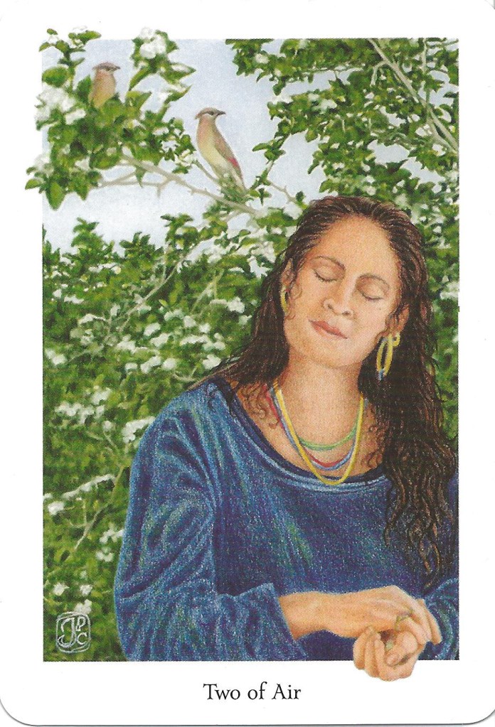 Two of Air is from the Gaian Tarot and is used with permission of the artist and creator Joanna Powell Colbert (https://www.gaiantarot.com/)
