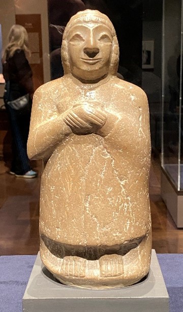 Ca 2400 BCE, even though the inlays of her eyes and eyebrows have been lost, you can see her expression of quiet power, maybe even joy.