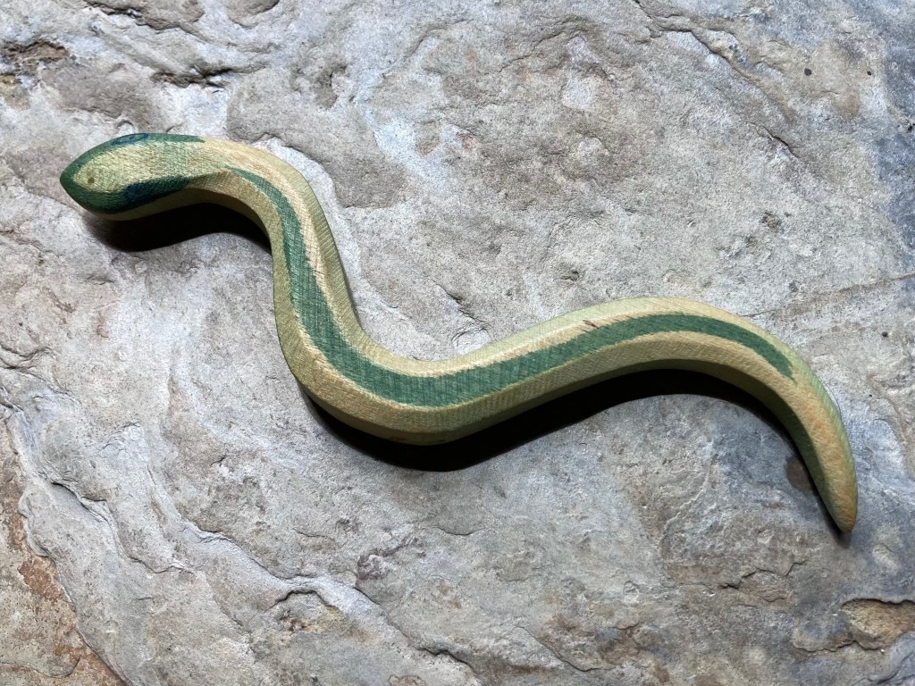 Green Snake started knocking on my door in my early 20s. One day, out of the blue, I bought a small carving that sits on my altar to this day. I couldn’t understand this impulsive action, as I was terrified of snakes at the time, and didn’t like them at all. Soon after, she started to appear in dreams. These were never scary, but always filled with a sense of magic, mystery and medicine. It was as if she brought her healing power to whatever dreamscape I experienced. In my waking life, I slowly stopped jumping at every wriggly twig. It was a first step toward healing and reclaiming my golden shadow.