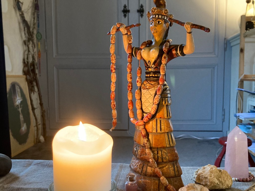Through taking this tattoo, I felt initiated in a long lineage of healers going back to Minoan times. I experienced a concrete example of building a mutual relationship with deity: what we put in comes back tenfold. Since joining the lineage of the Snake Goddess, my menstruation cramps (that used to be severely debilitating each month) ebbed to a mild discomfort. It felt like a gift or blessing from the Goddess, and an establishing of a truly mutual relationship. I would love to hear stories from others who experienced a concrete two-way relationship with spirit and the divine, so perhaps leave a comment below!