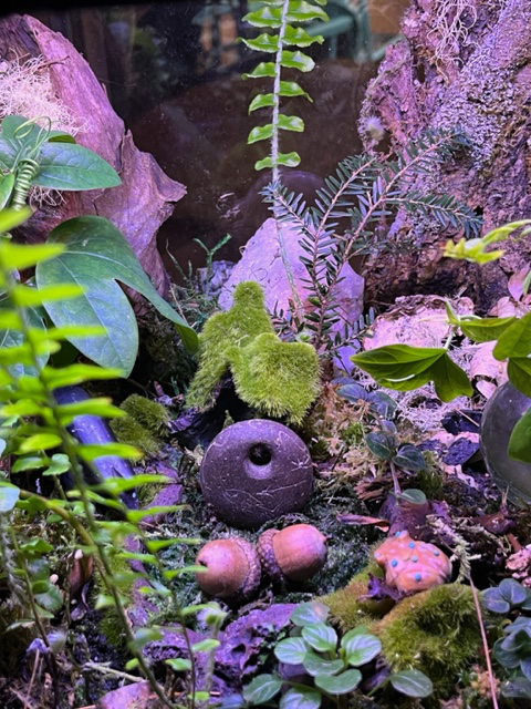 Terrariums have seasons too I have learned, only the changes are less dramatic because there are only three. I watch leaves slowly disintegrating before my eyes. Paying such close attention to details has sharpened my perceptions, helping me to become an even more keen naturalist/ecologist/ethologist.