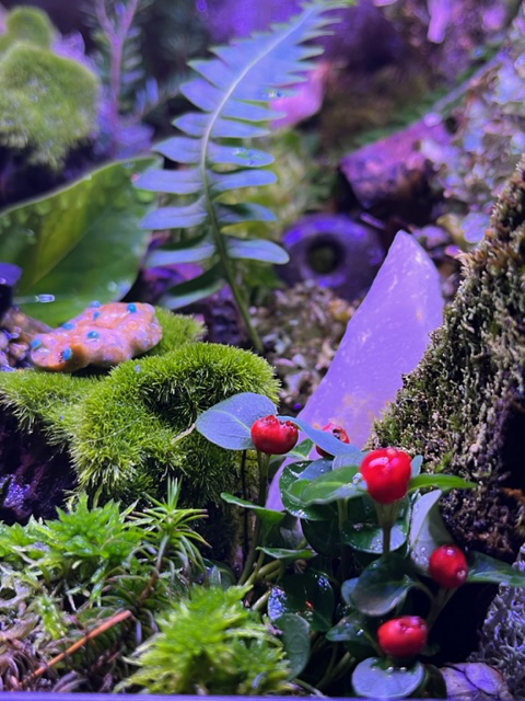 In the past I have kept terrariums through the winter and returned the contents to the wild in the spring, so this is my very first experience with a miniature forest in an ongoing way.