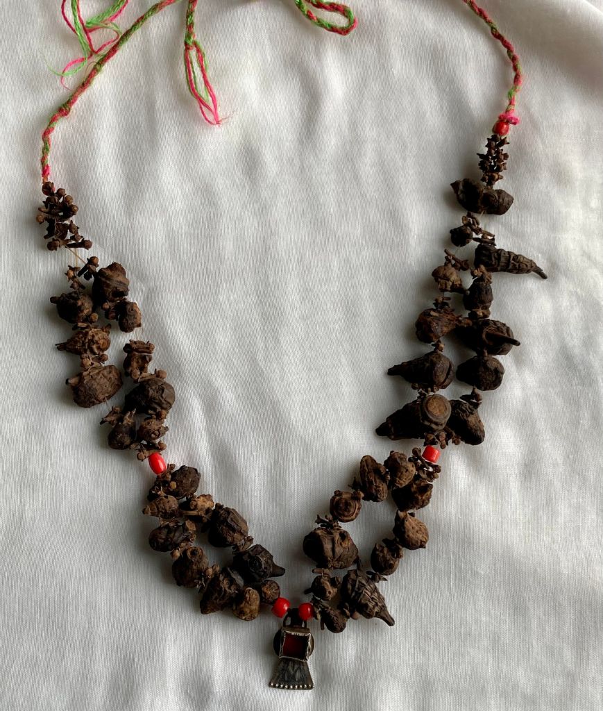 [Note: a correction to this post was made on July 30, 2025, to correctly identify the plant strung with cloves in the vintage necklace as nutgrass (Cyperus rotundus), not Moroccan Cedar (Cedrus atlantica) as previously stated.]