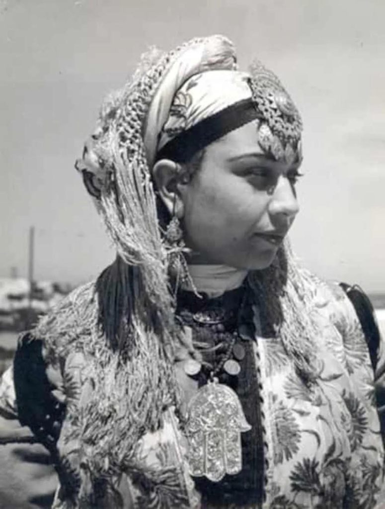 Moroccan Jewish woman wearing a hamsa pendant, 1955 – public domain