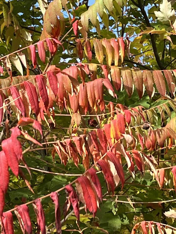 Spring stretches out her diaphanous green veil to meet the first days of summer, but fall is a different story for some. A splash of brilliance, then quite suddenly the swamp maple show is over as bare branches tangle with those in the same family who have lost their tops prematurely. The rest of the trees comprise a process that takes a couple of weeks. Every shade of gold, orange, copper, rust, sage or fading gray green is still a feast for discerning eyes.