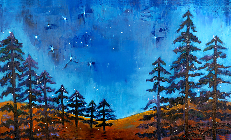 You know Judith, because I listen to NO news the particular horrors confronting us remain in the heavy dark cloud that oppresses me even as it hangs over all of our heads. Where do we go with this? You have one answer and so do I. Actually we have the same answer. ART – look at your inspiring paintings -they are beautiful! My favorite is the mountain – I love what you do with the stars….My art is nature – every morning before dawn I listen for the first bird – this morning it was raven whose low croak is such a soothing sound though his flight was hidden by trees…. one jay followed and then the chickadees and I stood outside in 34 degree temps just breathing in the pale pink clouds and the blue dawning standing in rain – sodden snow – a moment of pure grace. My point; nature is art and art is nature and taking refuge in what we love is about the most we can do. First Light is my favorite festival too – though here it heralds not spring but heavy snows and or flooding – my most unfavorite month – male bears emerge if it’s mild for a brief sojourn…yesterday I heard the first mating calls of the titmouse – and watched lone Robin snacking on old berries – there is always something – a FAR contributor wrote me about a novel she was writing where an egalitarian culture emerged…. another creative act -imagining may help – I don’t have any answers but focusing on what is BEAUTIFUL is an antidote to despair – and I am grateful to be living in the place where inspiration comes naturally…. May we all find solace, wonder and meaning in the beauty…