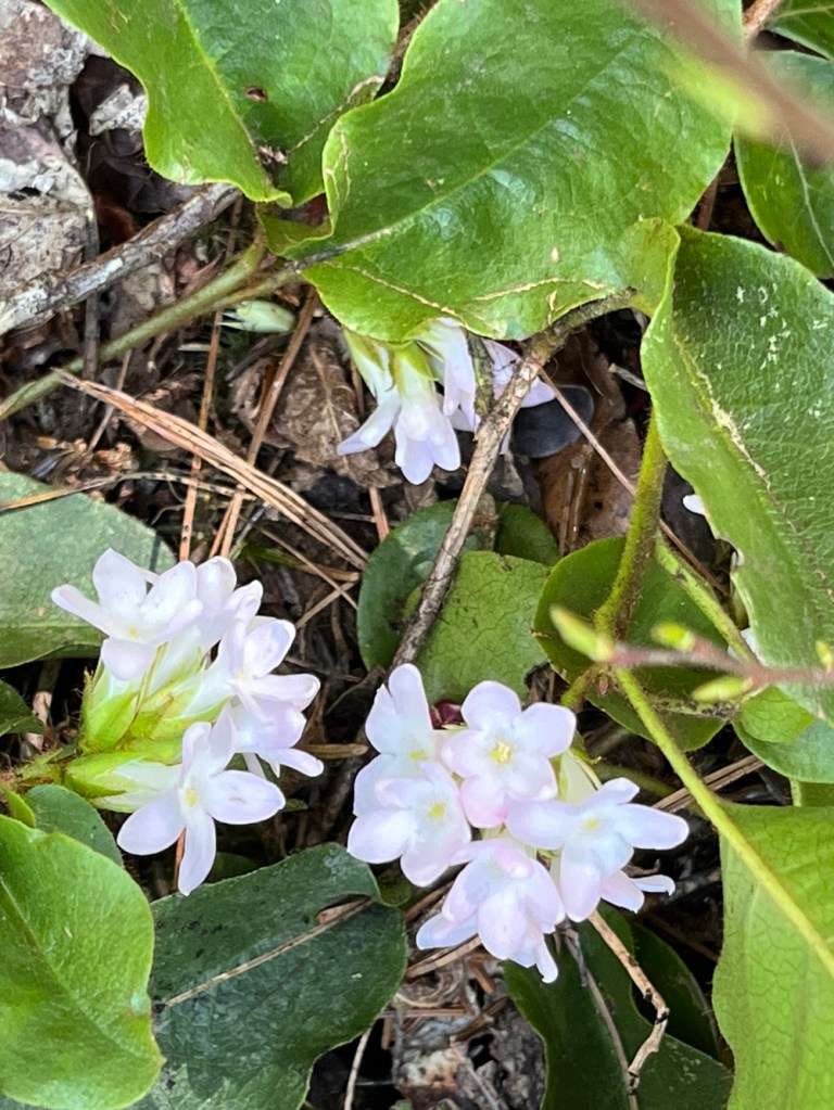 Walking some of my beloved paths I noted the changes from the week before. Slender spikes of magenta trillium, shimmering wintergreen leaves replace dull brown, the delicate opening of my favorite wild viburnum, hobblebush, was visible in all three spring phases. Lavender blue, and white wood violets peeked out of nourishing old leaves, a rare native honeysuckle was budded, false hellebore is in ki’s emerald glory, and the first budded trailing arbutus had pink pearl trumpets announcing to the bumblebees that they are ready for pollinating. When I bend down to sniff the perfumed arbutus I am transported into another dimension. At the vernal pool (endangered) clusters of wood frogs’ eggs are attached to twigs just under the surface, croaking love songs over.