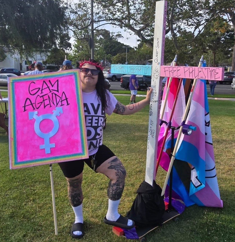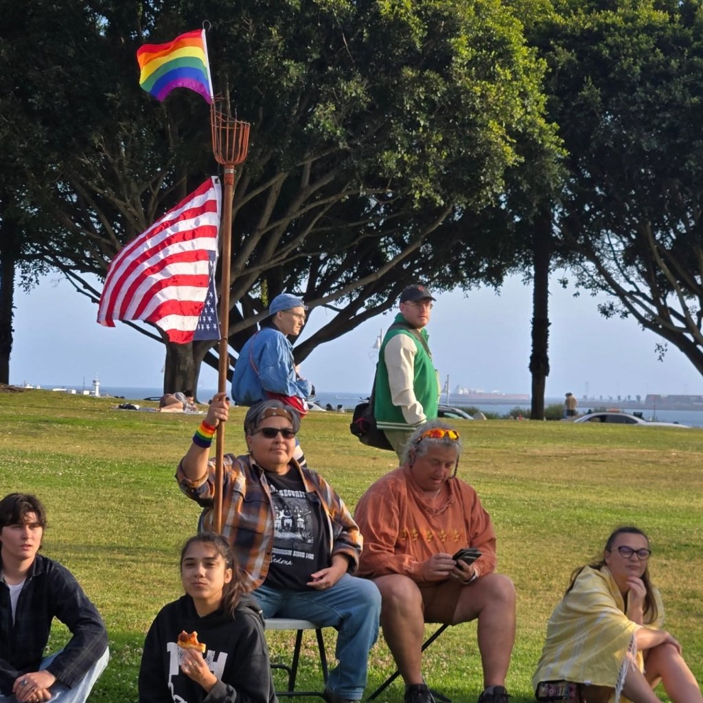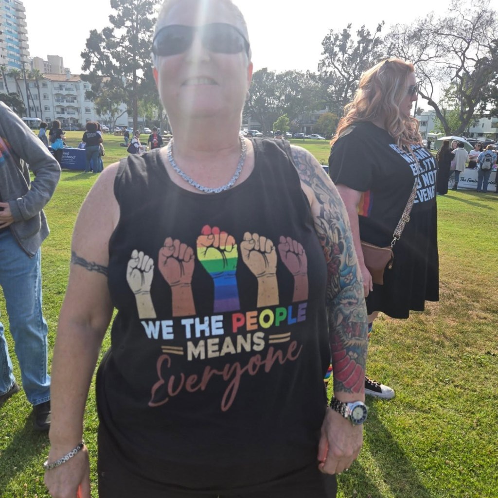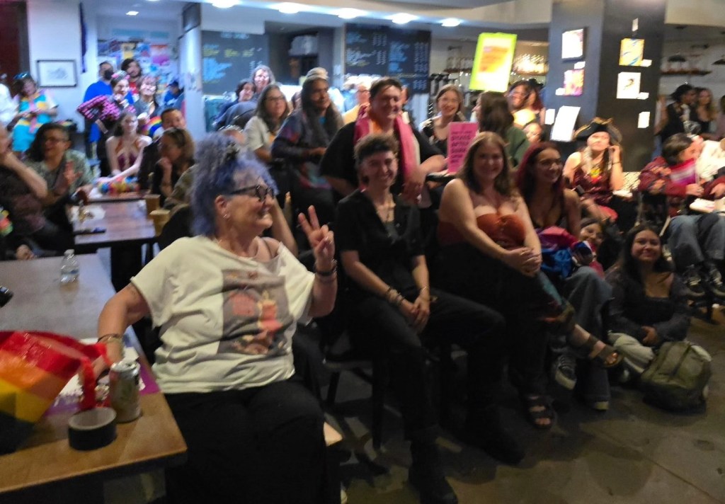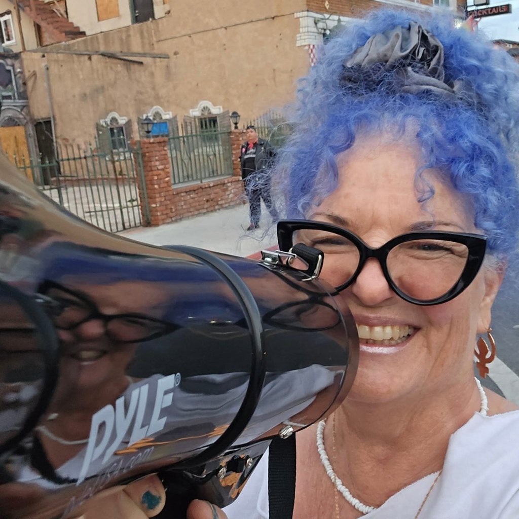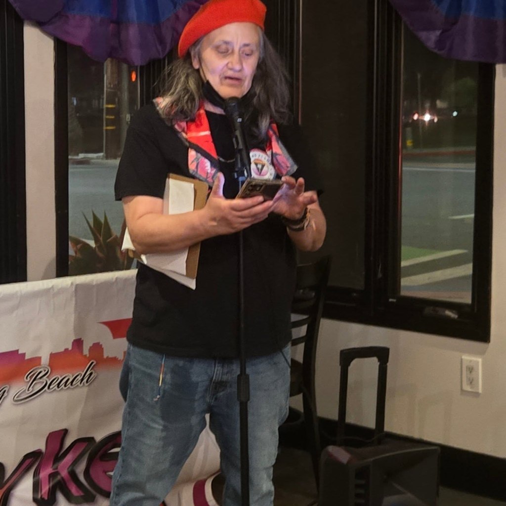 This year it is more important than ever to celebrate LGBTQ+ PRIDE. Here’s a taste of Long Beach, CA’s Dyke March. I was the emcee for the rally. My wife, Kimberly Esslinger was on the organizing committee and also created the first “Dykes After Dark” event– a poetry reading open mic– last year the poetry event was a pop-up with 15 people. This year the coffeehouse was filled to the max- 80 people or so, and the Dyke March itself had over 400. This is the thing: we need places to gather. And if you build it, we will come.