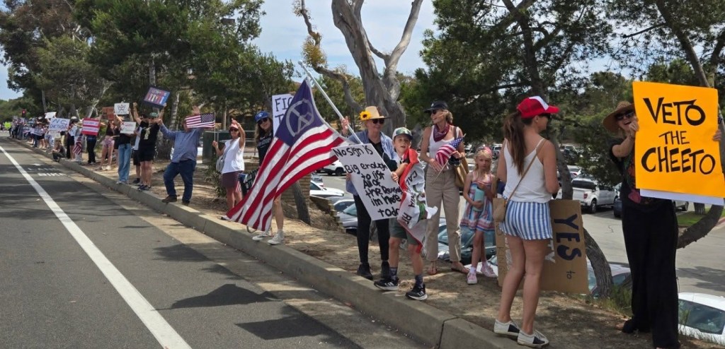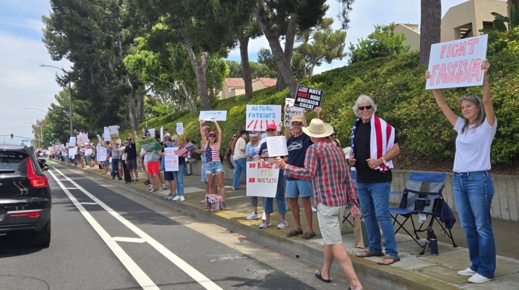 My wife and I and friends stood and protested in Seal Beach, CA and then drove through 1000s and 1000sof people lining both sides of Pacific Coast Highway for 30 miles from Seal Beach to Dana Point. I was up through the moon roof screaming “NO KINGS!” for hours!