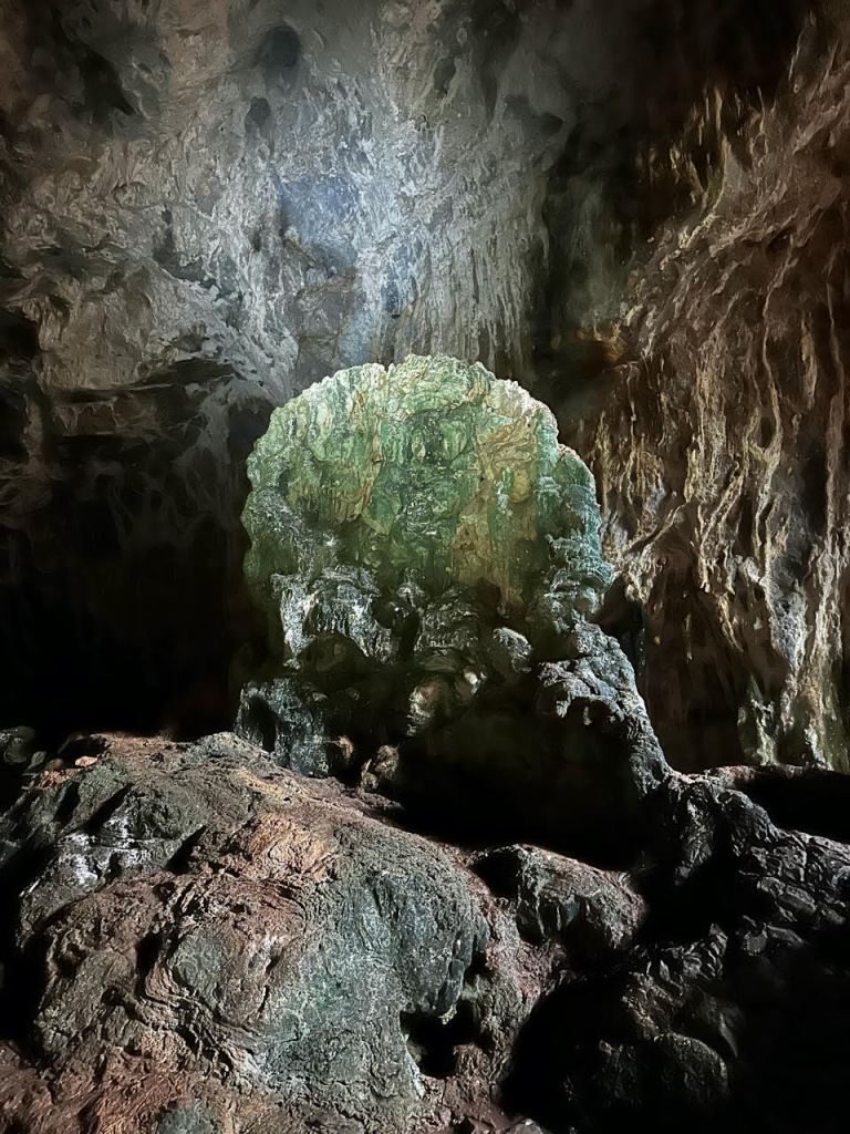 A woman burned incense as more chants were softly sung while we descended slowly into the first cave, still illuminated by daylight through its round opening. This was followed by some slick rock-hopping down moist crevices into the innermost womb of the cave. We were now surrounded by complete darkness.