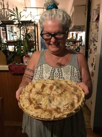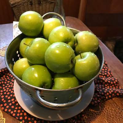 I’m deeply grateful and happy that the House went blue, that Orange County, California went BLUE and that 100+ women were elected to office. I’ll celebrate that and eat pie. This tradition we have had of making many, many green apple pies (this year sixteen!) has been going on over 25 years.