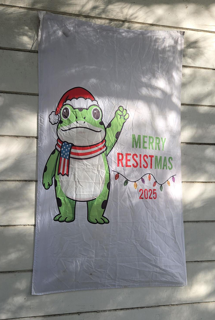 Oh yes, I’m grateful for the Portland frog—that blow up adult sized character with the pink scarf blowing back in the wind facing down a squad of ICE “officers.”