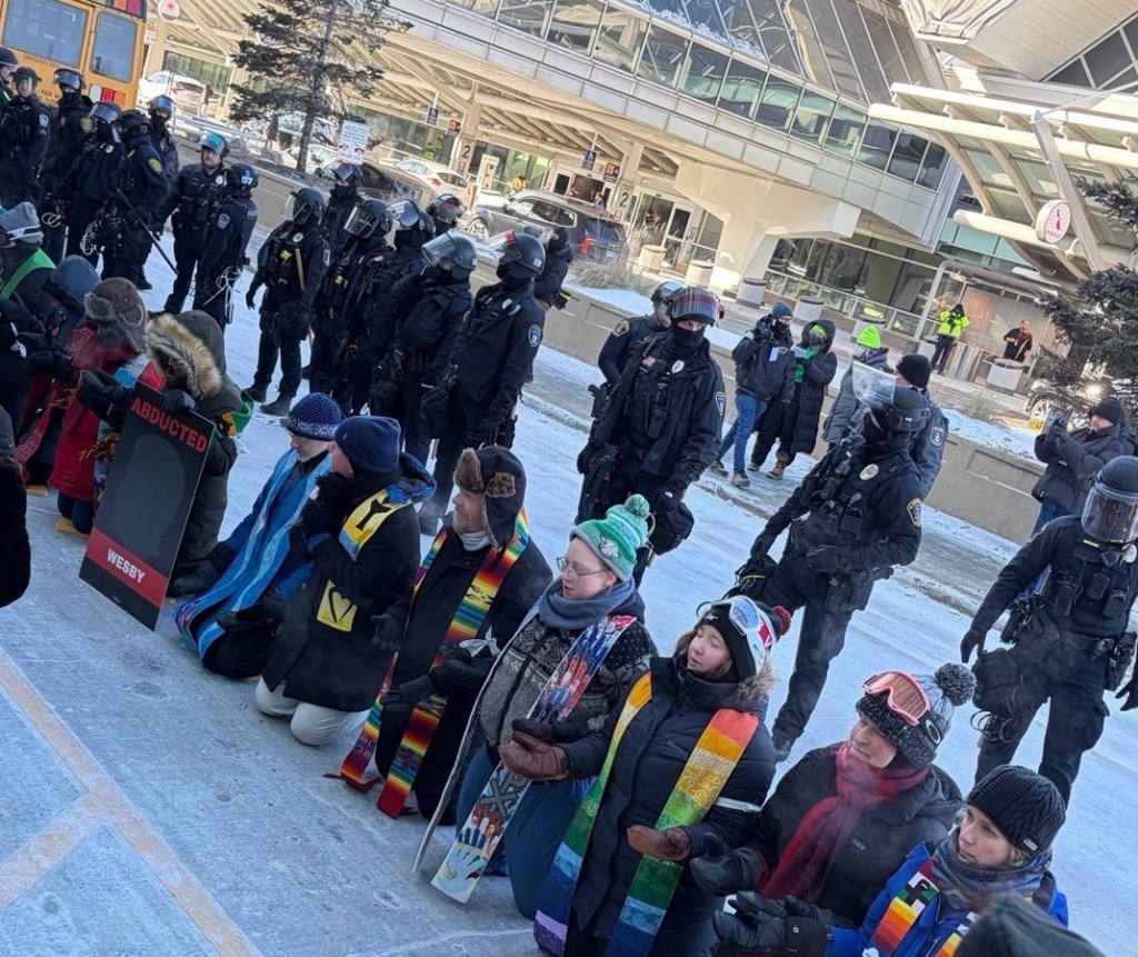 On Friday, January 23rd, seven hundred faith leaders from across the country heeded a call that had been put out just a few days before to come to Minneapolis to train, to observe, and to protest actions by ICE agents in the Twin Cities. Hundreds of them gathered in an interfaith service at Temple Israel. Others joined the National Prayer Call for Minnesota. And still others headed to the Minneapolis-St. Paul airport to engage in nonviolent direct action against the MSP airport authority, and Delta Airlines and Signature Aviation in particular, for their complicity with ICE in transporting those arrested either for deportation or for removal to other detention facilities.