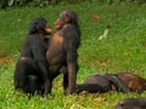 Franz de Waal’s studies of the other “ape” species that shares 98% of our DNA, the bonobo, debunks this popular myth.  The bonobo live in peaceful matriarchal clans, and their response to conflict is to rub each others’ genitals until the desire to fight goes away.  They are living proof that species very much like us can choose to “make love not war.” De Waal says that the most we can conclude from studies of our ape relatives is that ancestors of human beings, chimpanzees, and bonobos had the capacity to evolve toward dominance enforced by violence, or toward more peaceful ways of resolving conflict.