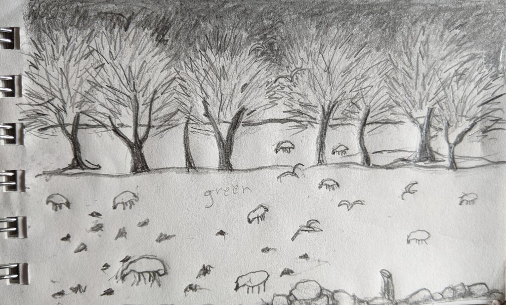 After a bit of a wander through and around the Stones, I sat and sketched. Slowly through that act of eye to hand to pencil to paper I began to feel the deep connection that always comes in when I attempt to translate 3D reality onto a 2D piece of paper.