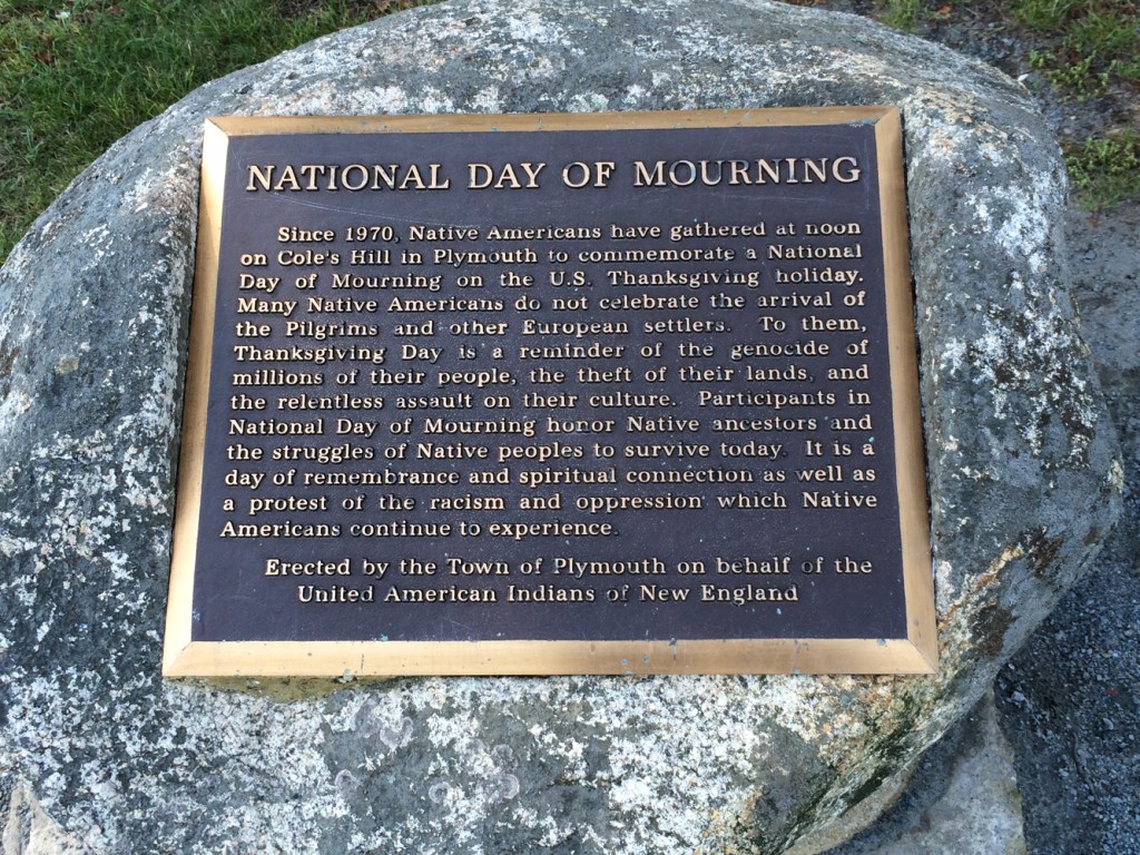 Thanksgiving is a complicated holiday. As a child, it was simple – a happy day of family and feasting. I would awake at dawn to help my mother stuff the turkey that would roast all day in the oven, and while she prepared all the rest of the meal, the younger of my brothers and I would head downtown with my nextdoor neighbor to delight in the Christmas displays in the department store windows. Our home would be filled – my older siblings returned from college and their adult lives, with a roommate, or girlfriend, and in later years, spouses and children. We would stuff ourselves with turkey, stuffing, and cranberry jelly, mashed potatoes and gravy, black cherry Jello, squash with mini marshmallows, and as my mother would always say, “corn for the Indians.” That would be the only mention of Native Americans on this day celebrating what has become a romanticized version of a harvest feast, shared by a few of the Waumpanoag people and the English settlers who owed their survival to their generosity.