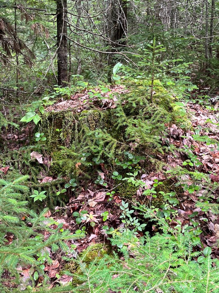 Opening the door to mist ‘Mary’s Garden’ is entering another magic realm. Ferns I never planted are unfurling. Two hemlock seedling have emerald bristles on the tips of their needles, Partridgeberry is spreading, twin flowers are appearing, unknown seeds are sprouting, fungi come and go, lichens abound, some cascading from pieces of old wood. One old piece of pine bark supports the tiniest fungal trumpets. This terrarium is a source of endless enchantment and comfort on the coldest winter day.