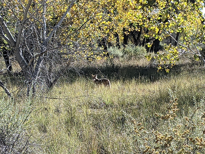 A week later, while on a bike-riding break from working on editing the stories for the Animal Wisdom deck, Coyote popped up in my path a mere 25 feet away before hightailing it across the way. I suppose I should expect the unexpected in this time of calm waiting.