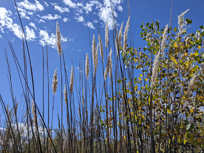 It was a glorious autumn day in the cottonwoods – hues of green turning, turning turning into orange, yellow, gold – sun-white grass heads shimmering in the sun, framed by a deep turquoise blue sky.