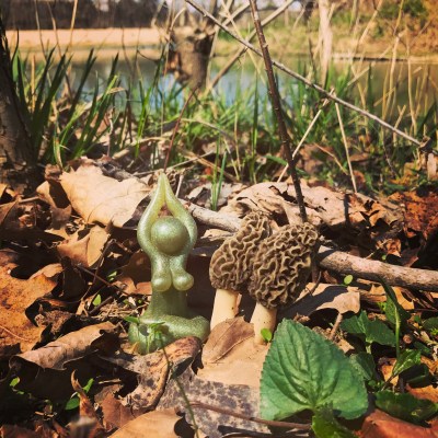 We emerge from our walk to find morels growing alongside the path (morels are wild, edible mushrooms found for about two weeks in Missouri each spring and considered a delicacy by many). The afternoon suddenly becomes even more rewarding and we stoop and peer through fallen oak, sycamore, and elm leaves looking for the telltale conical form of these forest treats. We quickly discover that we must tune in and “listen” for the mushrooms, so to speak, or we’ll walk right by them, none the wiser. The moment I start thinking about anything else, I stop finding any. Once I settle into my body and the moment and really look at the world again, there another morel will be.